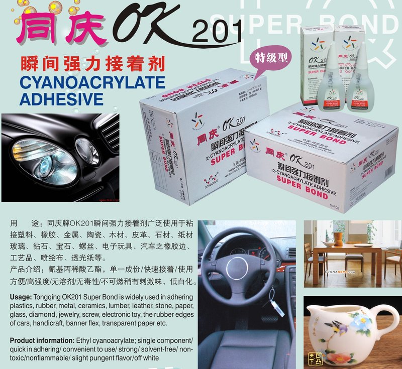 主要品種有:1、丙烯酸酯膠(瞬間膠) 502、AA超能膠、OK201、三秒、101修鞋膠、冬膠王、精品三秒等。2、電子工業(yè)類用膠系列:特種膠粘劑(UV無影膠、有機(jī)玻璃(壓克力)新一代粘合劑、有機(jī)玻璃粘合劑、ABS塑 料膠等)。3、環(huán)氧AB膠、厭氧膠、改性丙烯酸酯膠(AB-302)、 青紅膠、噴膠、水晶滴膠等。除以上產(chǎn)品,本公司還有特殊材質(zhì),如要求的高技術(shù)產(chǎn)品,只要您把需粘接的材質(zhì)寄予本公司,我公司技術(shù)部三天內(nèi)便可回復(fù)解決結(jié)果。誠信經(jīng)營是我們永遠(yuǎn)不變的宗旨,精益求精是我們一貫的追求,我們希望能以優(yōu)質(zhì)的產(chǎn)品質(zhì)量,優(yōu)惠的價格,完善的服務(wù),來滿足各界用戶的需求!